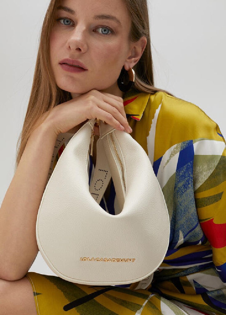 BANDOLERA TIP HOBO, EN EFECTO PIEL Y DETALLES DE TACHUELAS PLANAS. LOLA CASADEMUNT.