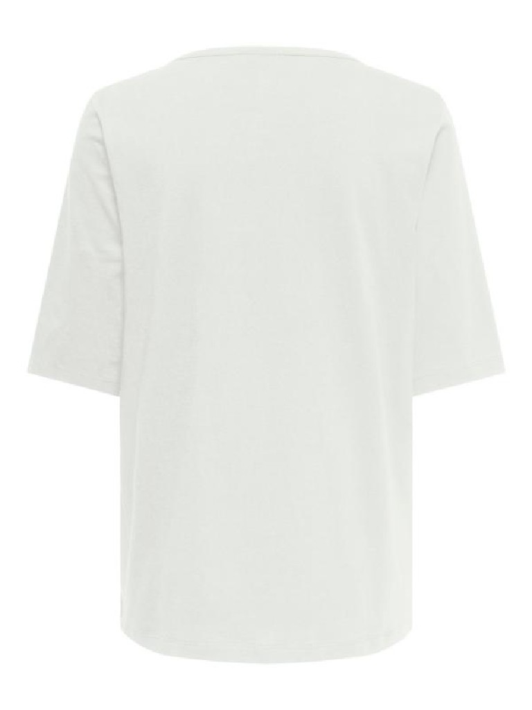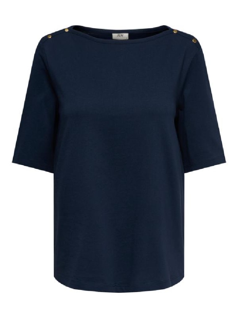 CAMISETA CUELLO BARCO CON DETALLE BROCHES HOMBRO Y MANGA AL CODO
