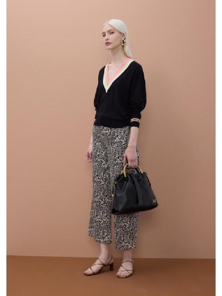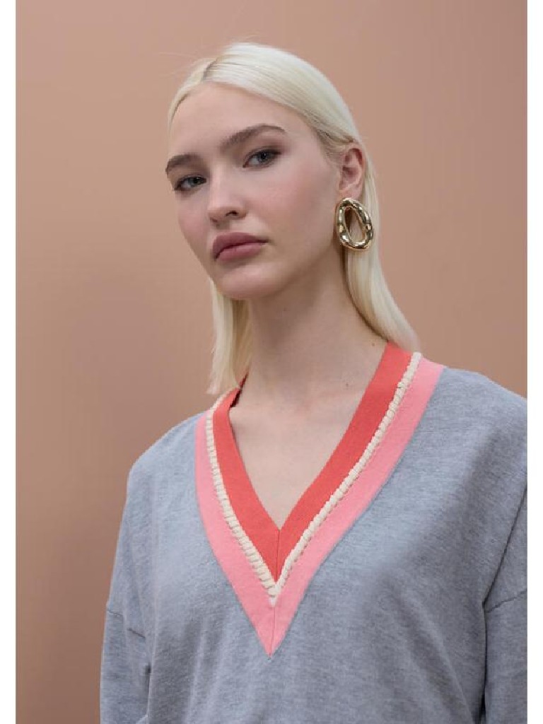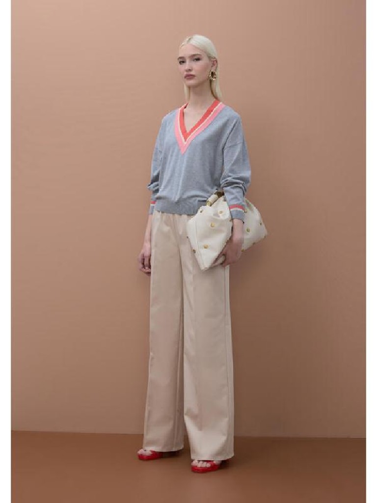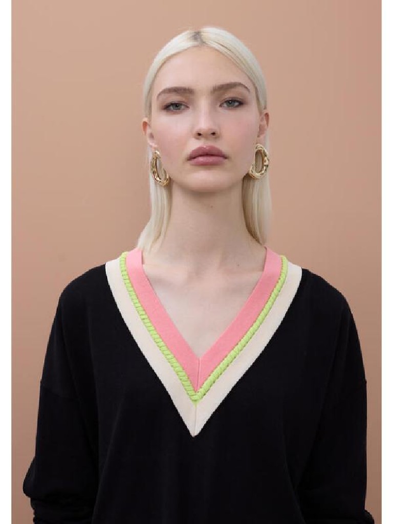 JERSEY CON ELEGANTE DISEÑO CUELLO PICO DETALLE TRENZA CON BONITA COMBINACION DE COLORES BUSCANDO CONTRASTE Y UN TOQUE CHIC Y FRESCO ELEVANDO SU DISEÑO