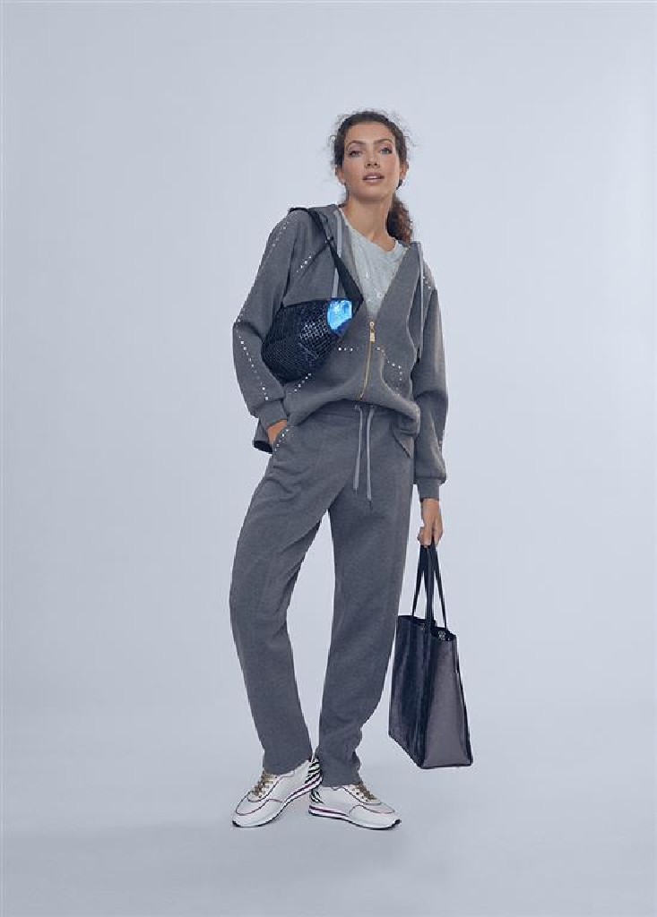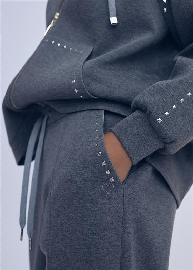 PANTALON ALGODON CON CORDON BOLSILLOS LATERALES CON LOGO BORDADO Y TACHUELAS PLATEADA CAÑO RECTO CON NERVIO CENTRAL EN AMBAS CARAS 12467019