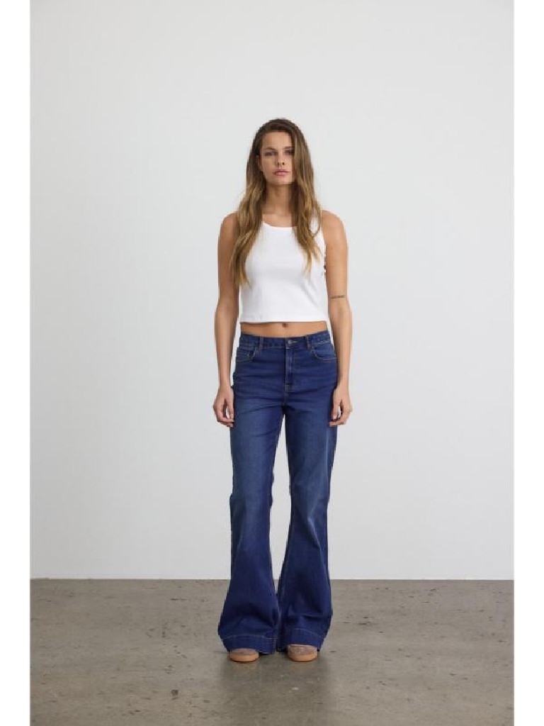 PANTALON TEJANO ELASTICO COLOR MEDIO MODELO FLARE ELASTICO QUE SE ADAPTA AL CUERPO Y SIENTA MUY BIEN Y ES MUY COMODO