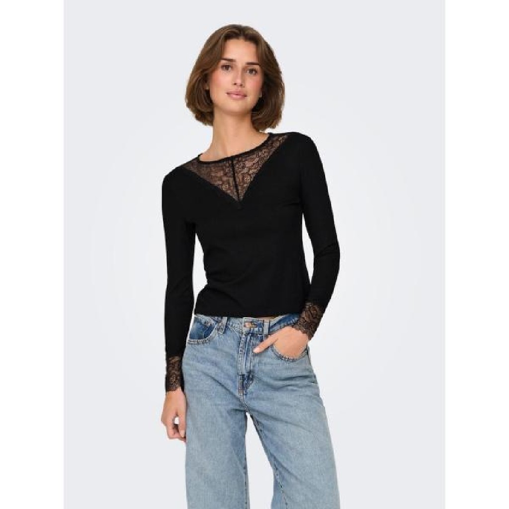 TOP MANGA LARGA DETALLE PUNTILLAS EN CUELLO Y MANGAS. TEJIDO FINO EN CANALE. JDY.